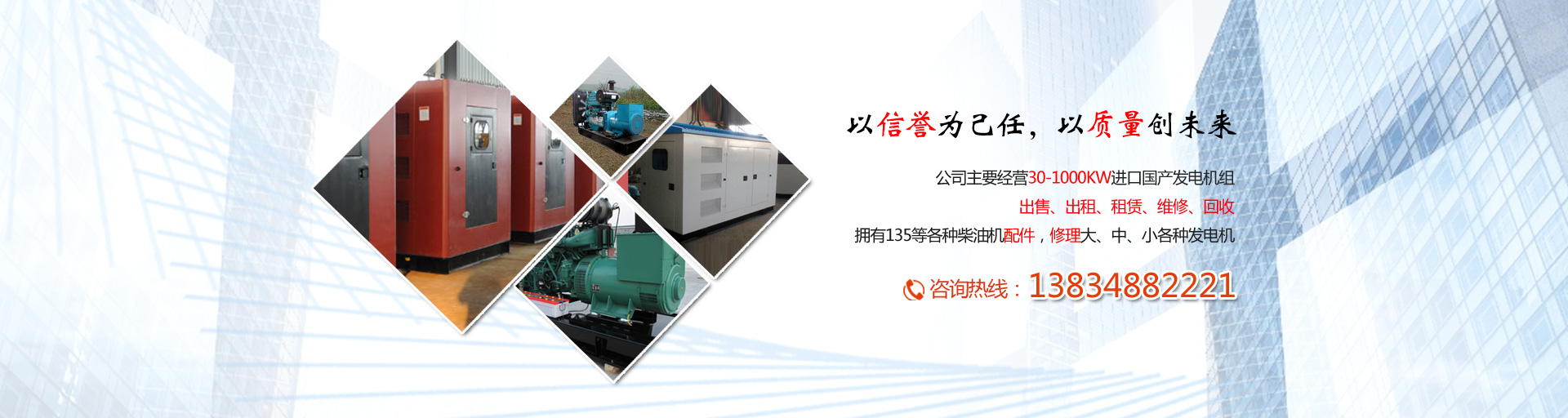 公司主要經(jīng)營(yíng)30-1000KW進(jìn)口國(guó)產(chǎn)發(fā)電機(jī)組的出售、出租、租賃、維修、回收,擁有135等各種柴油機(jī)配件,修理大、中、小各種發(fā)電機(jī)。能隨時(shí)為廣大客戶提供各種進(jìn)口及國(guó)產(chǎn)品牌發(fā)電機(jī)組。配備專業(yè)司機(jī)和維修維護(hù)人員,專業(yè)的服務(wù)、先進(jìn)的設(shè)備,現(xiàn)場(chǎng)使用零故障。本公司發(fā)電機(jī)組具備以下特點(diǎn):噪音低、性能可靠、穩(wěn)定性高、節(jié)能環(huán)保。我們可以滿足用戶長(zhǎng)短期用電;面向建筑工地、公路建設(shè)、地鐵施工、野外作業(yè)、商場(chǎng)備用、醫(yī)院應(yīng)急、影視媒體、單位供暖等多家企事業(yè)單位提供租賃業(yè)務(wù)。